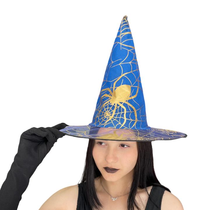 CHAPEU BRUXA AZUL ESTAMPA TEIA
