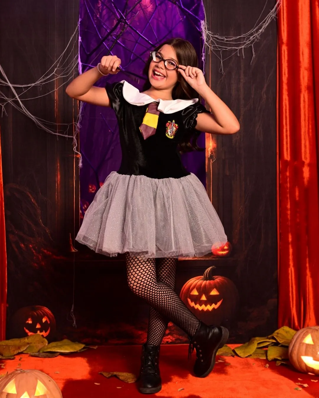 Linda Fantasia da Hermione; pode ser usada em aniversário, Carnaval, halloween, festas de escola e onde mais a sua imaginação permitir.