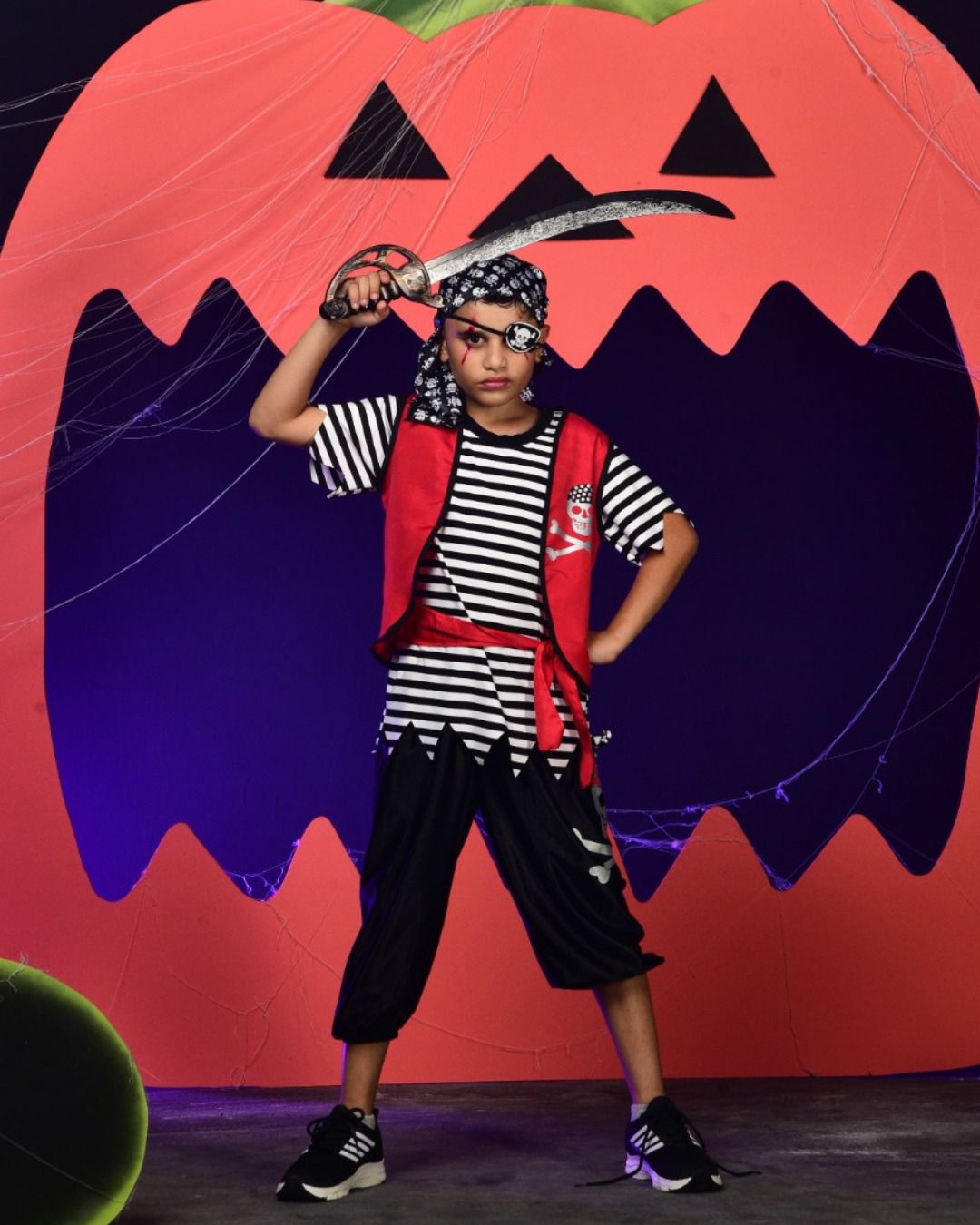 Conteúdo da Embalagem: 01 Calça, 01 Camisa, 01 Colete, 01 Bandana, 01 faixa e 01 Tapa Olho.