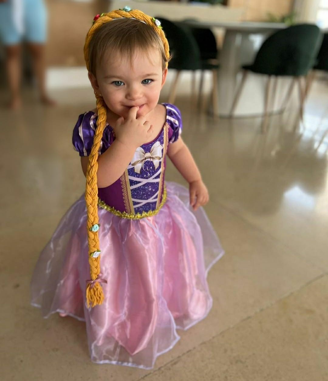 Com essa Fantasia da Rapunzel a diversão e alegria da sua filha estarão garantidas!