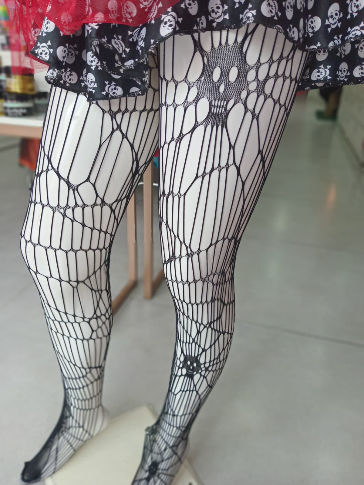 Meia Calça Arrastão Preta CAVEIRAS- Tamanho Único (veste Juvenil/ Adulto)