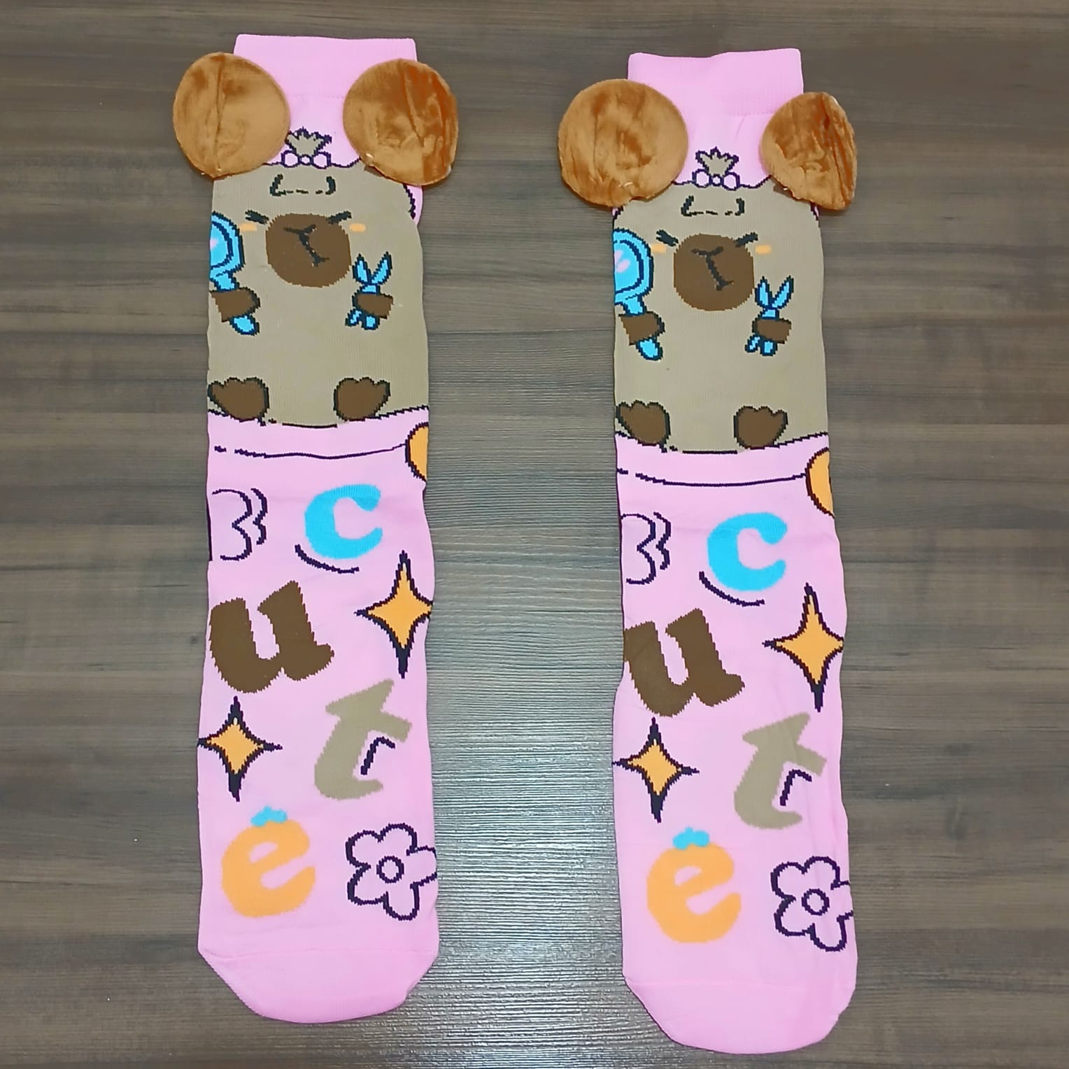 MEIA MALUCA 3D DIVERTIDA - CAPIVARA ROSA