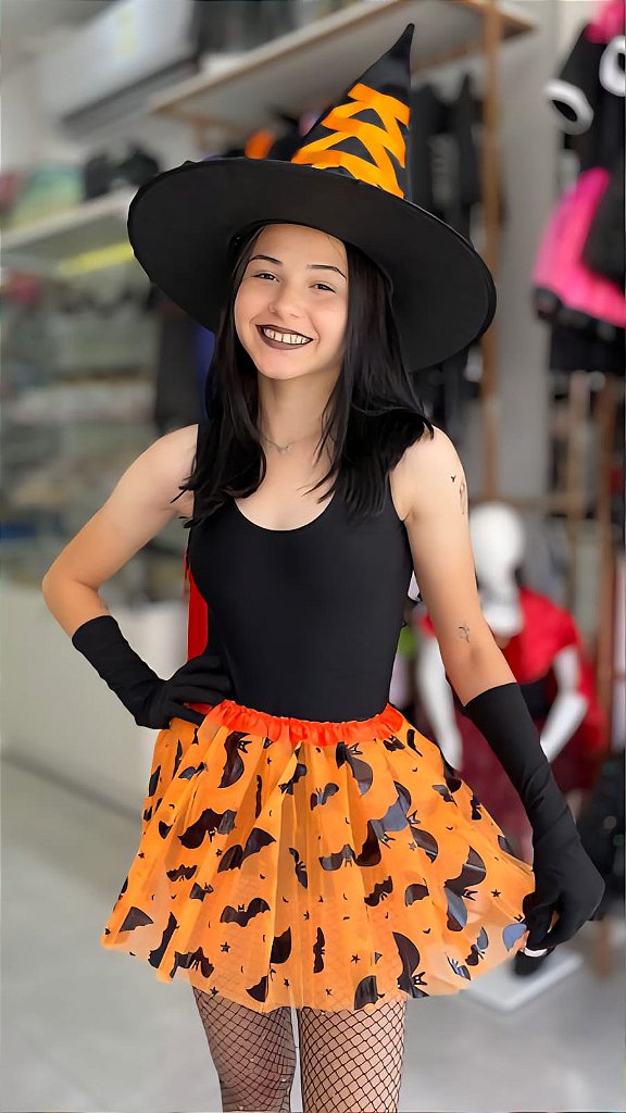 Saia de Tule com estampas de morcego no tema Halloween de 40cm e 30cm, são uma ótima opção para montar fantasias leves que são principalmente utilizadas em Festas a Fantasia e Festas de Halloween, dando um toque especial na sua fantasia e destacando o seu estilo.